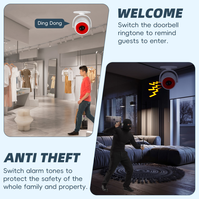 This PIR motion alarm detects human movement and triggers a high-pitched sound and light alert. It features 360° adjustable angle and multiple working modes, suitable for home security and intrusion alert scenarios.