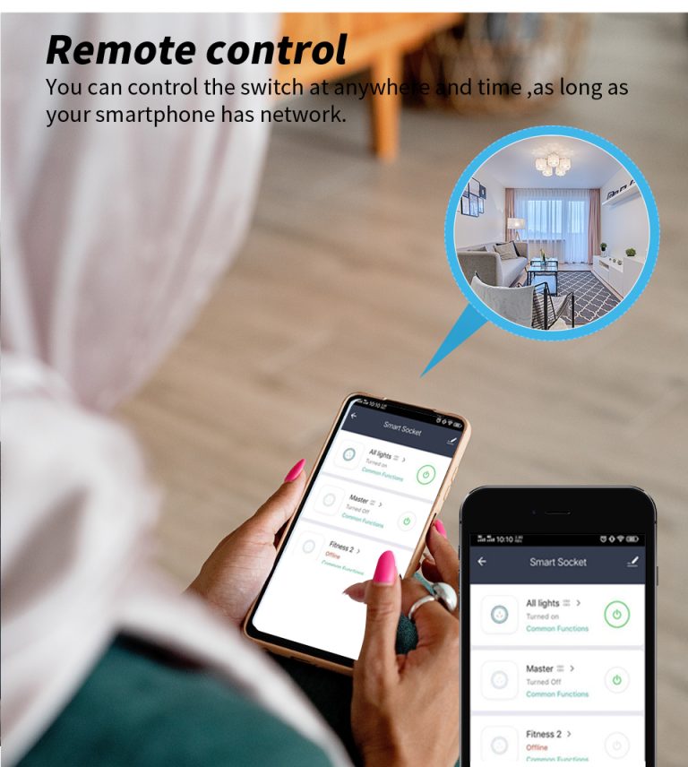 This smart socket offers remote control, timer functionality, and supports Tuya protocol, allowing users to manage appliances via a smartphone app. It is compatible with Alexa, Google Assistant, and the Tuya platform for voice control, providing easy operation. The simple design works with most household devices, enhancing energy efficiency and smart home features.