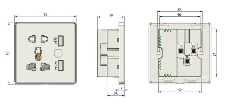 This 86mm smart socket plug features a universal socket design, compatible with plug types from different countries, making it perfect for global use. Equipped with USB ports, it allows convenient charging for phones, tablets, and other devices. With Tuya WiFi protocol, users can remotely control the socket through a smartphone app, and also set timers and voice commands for added convenience. It is compatible with Alexa and Google Assistant for seamless voice control.