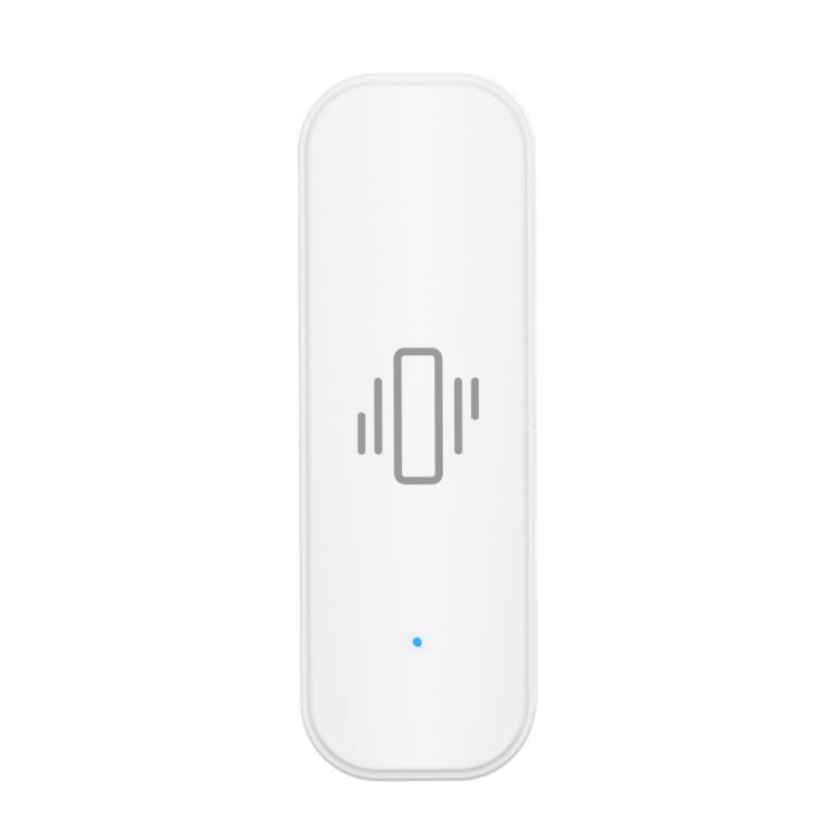 ZigBee smart vibration sensor designed to detect vibration on doors, windows, or objects. It sends real-time alerts via app for anti-theft monitoring and smart security applications.